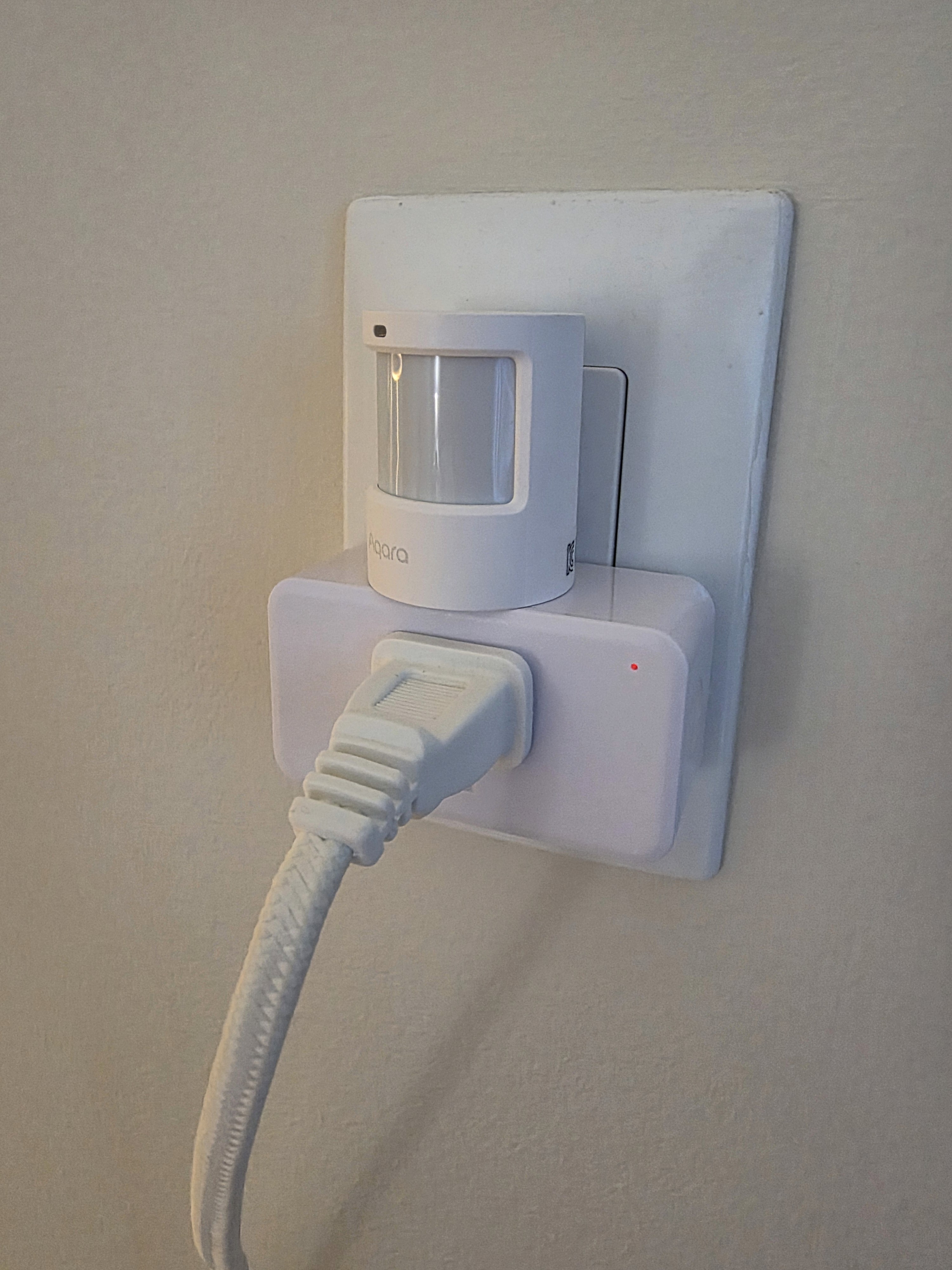 ※ In the first photo, there’s a motion and illuminance sensor sitting on top of the smart plug. That device is used for a different automation and is not required for this one.