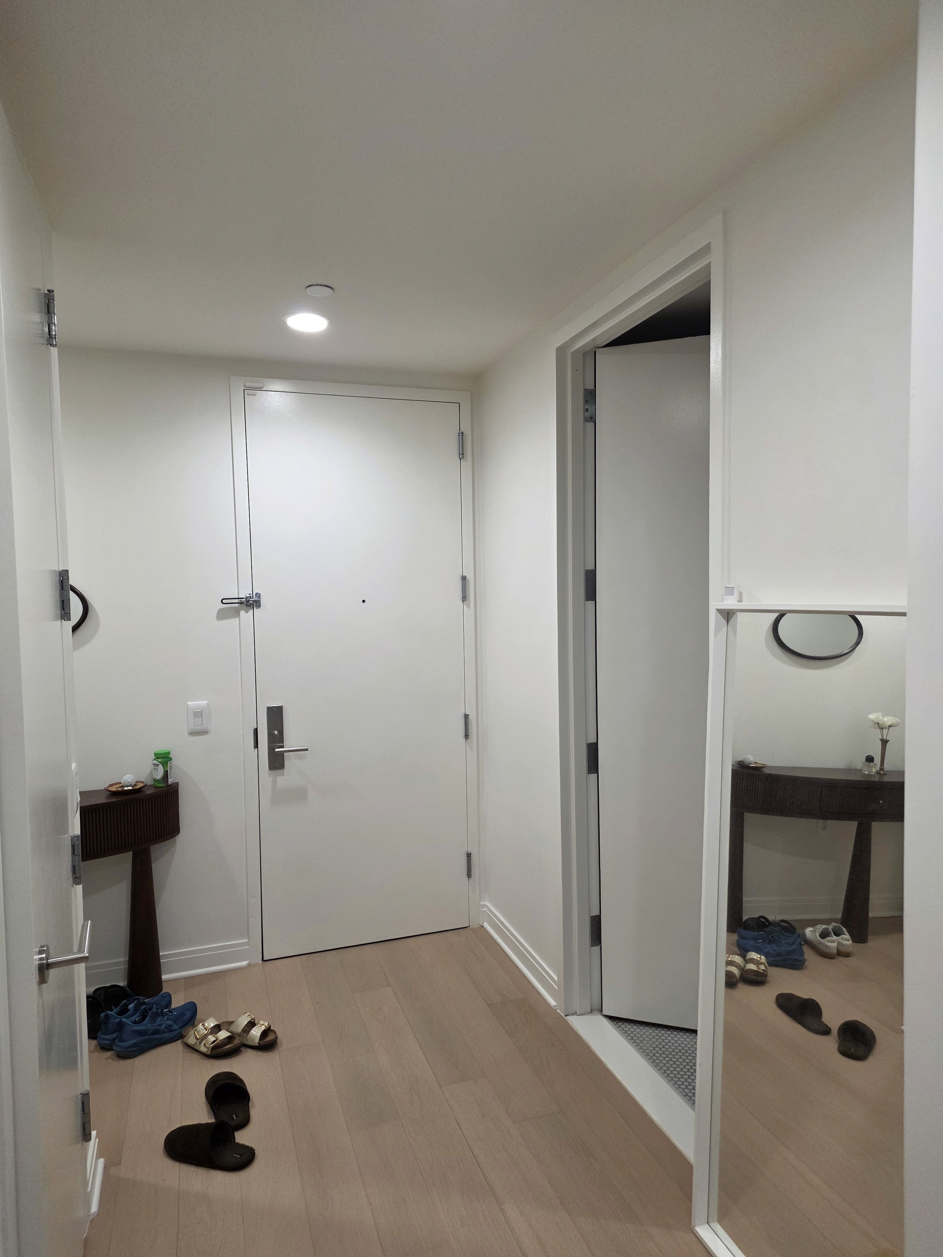 집 안에 있을 때뿐만 아니라 외출했다가 들어올 때도 복도 조명이 바로 켜지길 원해서 아카라 P2 도어센서를 현관문에 부착해 문이 열려도 조명이 켜지도록 했습니다.
